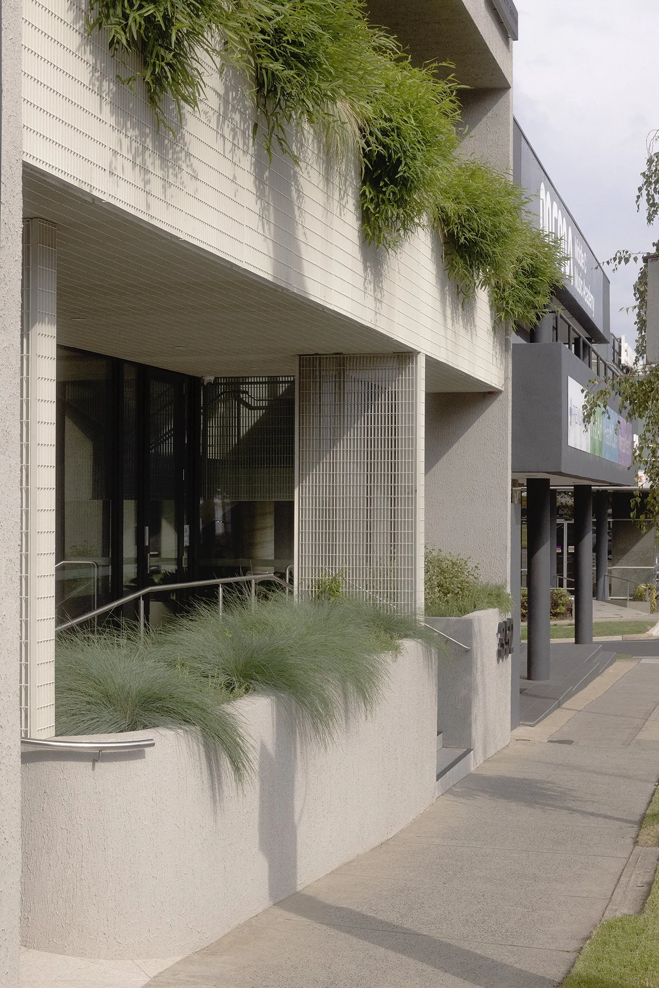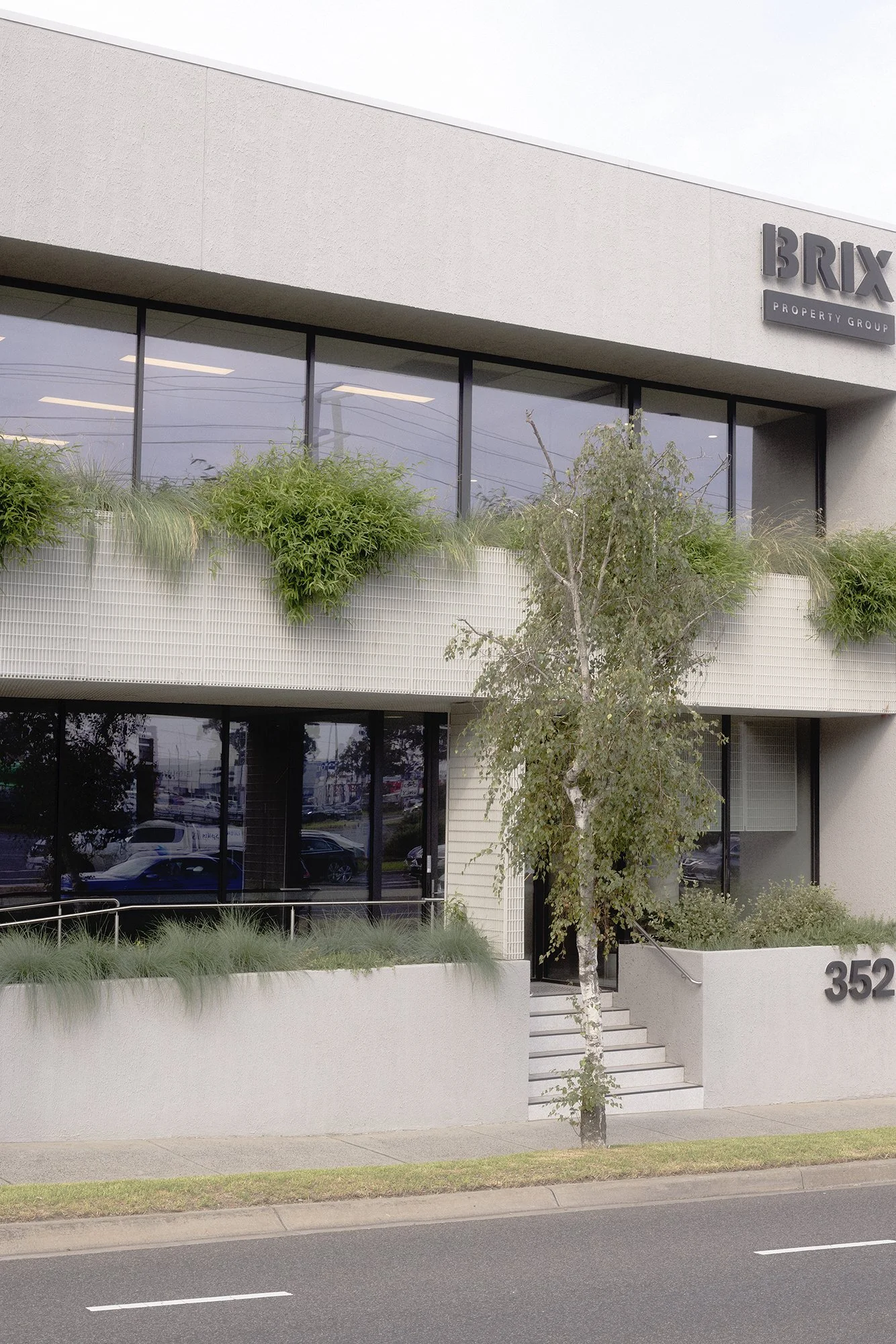 The landscape design at 352 South Road, Hampton East supports a contemporary commercial development for Brix Property, enhancing both functionality and visual appeal within a constrained urban site. The design responds to the building form and rear laneway access by integrating circulation, planting, and built elements into a cohesive environment.